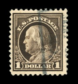 796 O 518b image#518b, $1.00 Deep brown, a highly collectable used example of this rare and often misidentified shade, possessing extraordinarily large margins and being rather well centered within them, strong true deep brown color (actually the shade identification in Scott is a misnomer, as examples of this stamp must display hues of yellow throughout the design in order to be correctly identified as #518b), light boxed St. Louis cancel, very fine; 2006 PF certificate. (Image) $1,050.00