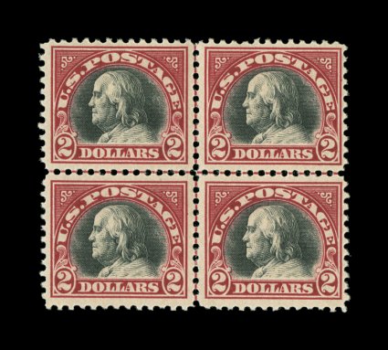834 ogbl 547 image#547, $2.00 Carmine and black, center line block of four, strong deep colors, o.g., lightly hinged in the top pair, bottom pair is n.h., very fine. (Image) $980.00