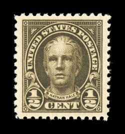 837 nhu 551 image#551, 1/2c Olive brown, precisely centered within lavishly large margins, deeply rich color and a sharp detailed impression, pristine o.g., n.h., extremely fine; a lovely little gem; 2006 PSE certificate (XF-Superb 95 Jumbo; SMQ $65,00 for 95 and $210.00 for 98). (Image) $0.50