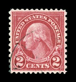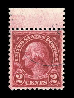 920 O 595 image#595, 2c Carmine coil waste, an incomparable top sheet-margin used example of this truly scarce and terribly challenging stamp, being in a condition unlike any other we have ever seen, possessing not only perfect centering within uncharacteristically large margins, but its color is incredibly intense and fiery, which must be seen in person to fully appreciate, beautifully postmarked with the lightest possible town c.d.s., extremely fine gem; we doubt a finer used example exists; 2002 PF certificate. (Image) $350.00