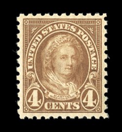 913 nhu 585 image#585, 4c Yellow brown, select quality mint single of this surprisingly difficult stamp, exceptionally well centered, lovely rich color and a well defined impression, unblemished o.g., n.h., extremely fine gem; 2005 PSE certificate (XF-Superb 95; SMQ $455.00). (Image) $37.50