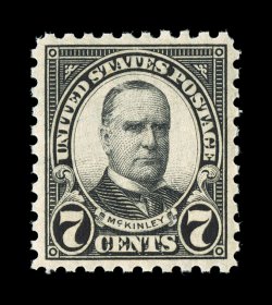914 nhu 588 image#588, 7c Black, a marvelous quality mint single that is impeccably well centered and margined, strong color and impression, pristine o.g., n.h., a superb gem; 2006 PSE certificate (Superb 98; SMQ $1,250.00); this is the highest grade the PSE has assigned to this stamp, being one of only four to achieve this grade. (Image) $26.00