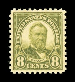 915 nhu 589 image#589, 8c Olive green, highly select mint single with extraordinarily large and well balanced margins all around, sumptuously rich color and a crisp impression, unblemished o.g., n.h., extremely fine; an uncommonly choice example; 2006 PSE certificate (XF-Superb 95 Jumbo; SMQ $$550.00 as 95 and $1,600.00 as 98). (Image) $57.50