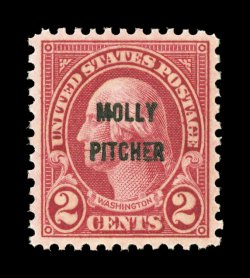 962 nhu 646 image#646, 2c Molly Pitcher, a remarkable quality mint single, featuring perfectly balanced margins all around, rich vibrant color and a strong impression, immaculate o.g., n.h., a superb gem for the perfectionist; 2006 PSE certificate (Gem 100; SMQ $350.00 for 98); this is the sole example in the PSE population report to be awarded the coveted Gem 100 grade, with only one stamp grading higher, that being the Gem 100 Jumbo our firm sold in October 2006 for $2,645.00 (including premium). (Image) $1.60