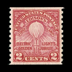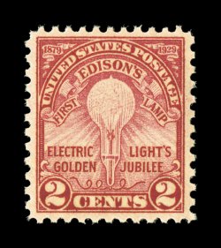968 nhu 655 image#655, 2c Electric Light Jubilee, marvelously well centered within large balanced margins, strong rich color, o.g., n.h., extremely fine gem; 2006 PSE certificate (Superb 98; SMQ $330.00); this is the highest grade the PSE has given this stamp to date. (Image) $0.90