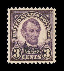 977 nhu 672 image#672, 3c "Nebr." ovpt., a highly select mint example that is flawlessly centered within large margins, deep prooflike color and impression, unblemished o.g., n.h., extremely fine; 2007 PSE certificate (Superb 98; SMQ $1,050.00). (Image) $24.00