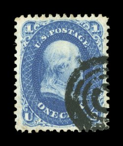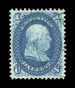 100 Ou 63b image#63b, 1c Dark blue, a marvelously choice used example of this elusive color variety, possessing outstanding color in the true and unmistakable dark blue shade, deeply etched impression, excellent centering within large margins which are most uncharacteristic of this stamp, even its cancel is out of the ordinary, being a particularly light town c.d.s., extremely fine; among the finest certified used examples of this distinctive and scarce shade; 1981 PF certificate and a 2007 PF certificate (XF 90; SMQ $1,050.00). (Image) $300.00