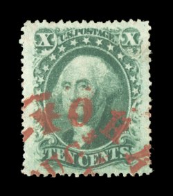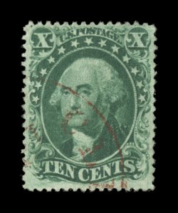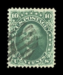 83 Ou 34 image#34, 10c Green, Ty. IV, position 74L1, recut at top, exceptionally well centered within large margins, deeply rich color and a sharp detailed impression, lightly cancelled, extremely fine and quite handsome; 2002 PF certificate and a 2005 PSE certificate (VF-XF 85; SMQ $3,400.00). (Image) $2,250.00