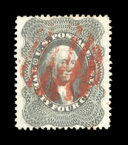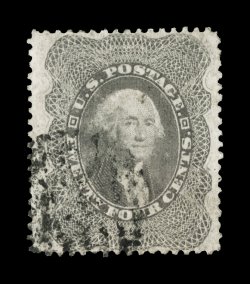 88 Ou 36b image#36b, 12c Black, plate III, a most impressive used single, incredibly well centered amid uncharacteristically large margins, deep intense color and impression, light rimless c.d.s. postmark, extremely fine gem; 2005 PSE certificate (XF-Superb 95; SMQ $1,500.00); one of four used examples of this stamp to achieve this grade, the highest for any #36b. (Image) $225.00