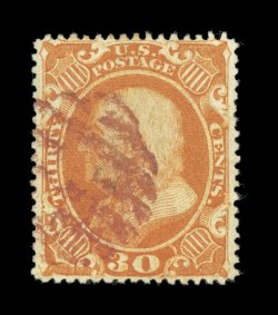 94 Ou 38 image#38, 30c Orange, a gorgeous used single, featuring glorious deep color and a superbly detailed impression, especially well centered within much wider margins than typically found on this value, wonderfully postmarked by a neat strike of a magenta grid cancel, extremely fine; 2001 PF certificate and a 2005 PSE certificate (XF 90; SMQ $1,300.00). (Image) $590.00