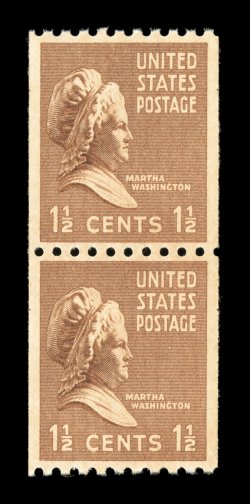 1061 nhu 849 image#849, 1 1/2c Bister brown coil, an impeccable mint pair, perfectly centered, rich color, o.g., n.h., superb gem; 2006 PSE certificate (Gem 100; SMQ $435.00); one of only two #849's (both pairs) to grade Gem 100, the highest awarded to this stamp. (Image) $2.50