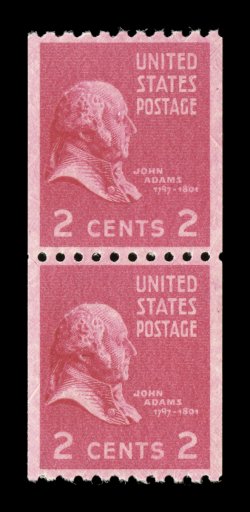 1062 nhu 850 image#850, 2c Rose carmine coil, mint pair, exceedingly well centered, brilliant color, o.g., n.h., extremely fine; 2006 PSE certificate (Superb 98; SMQ $195.00); the only example to be achieve this grade, the highest to date. (Image) $5.00