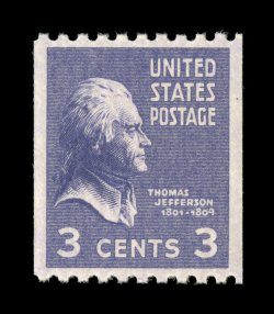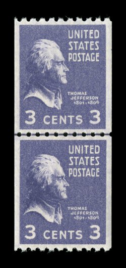 1064 nhu 851 image#851, 3c Deep violet coil, outstanding joint line pair, precisely centered, deep vibrant color, o.g., n.h., extremely fine gem; 2006 PSE certificate (Superb 98; SMQ $210.00); the highest grade to date and the only line pair to grade 98. (Image) $5.00