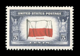1066 nhu 909 image#909, 5c Poland, mathematically precise centered within large margins, strong colors, o.g., n.h., superb; encapsulated PSE certificate (Gem 100; SMQ $180.00); the highest grade awarded to this stamp. (Image) $0.20