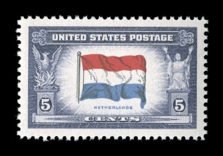 1068 nhu 913 image#913, 5c Netherlands, perfectly centered within extravagantly large margins, brilliantly fresh, o.g., n.h., superb; 2006 PSE certificate (Gem 100; SMQ $250.00); the highest grade given to this stamp. (Image) $0.25