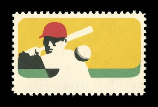 1074 nh 1381a image#1381a, 6c Baseball, black (engraving) omitted, highly select example of this popular error, bright and fresh, wonderfully well centered and not at all characteristic of this issue, o.g., n.h., extremely fine and exceedingly choice;1992 and 2006 PF certificates (the latter graded XF-Superb 95; unlisted in SMQ). (Image) $850.00