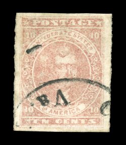 1302 O 5 image#5, 10c Rose, choice used example, with huge margins all around, attractive pastel color, neat portion of black Virginia c.d.s., extremely fine and scarce thus; 2005 PF certificate. (Image) $500.00