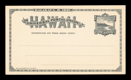 1309 ogc UX1-9a image1882-97 Postal cards a complete set of 10 different cards, the last issue is the 1894 printing of the 1c and the 1897 printing of the 2c, includes the very scarce 1892 lithographed printing of the 2c Black, which really should have its own number just as the 1c has its own number as lithographed, all are crisp and fresh with sharp edges and corners, very fine. (Image) $530.00