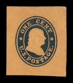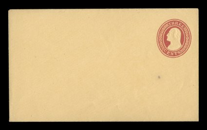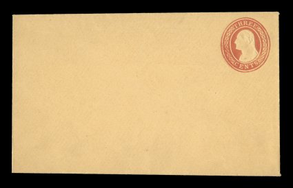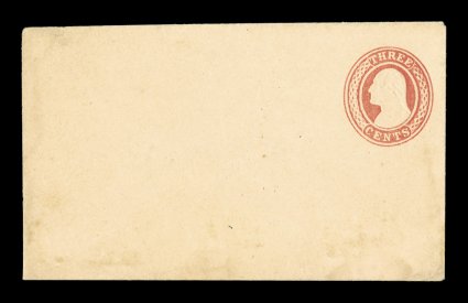 1364 ogc U2 image#U2, 3c Red on buff, die 1, size 7, knife 20, wmk. 1, a lovely fresh mint entire, this is not among the earliest printed of this envelope as it lacks the red Nesbitt & Co. crest at the tip of the backflap, which was immediately ordered removed by the Post Office Department, however our observation is that this early die 1 without the crest is actually a scarcer envelope as most we have seen have it, a very desirable premium example with clean sharp edges and corners and just one tiny natural paper spot, extremely fine (UPSS #3). (Image) $1,000.00
