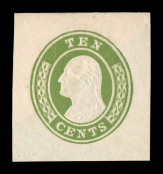 1372 og U17a image#U17a, 10c Pale green on white, mint cut square, 34x37mm, with back flap still attached, bright and fresh with excellent color in a pretty yellow green shade, very fine and choice; ex-Floyd. (Image) $400.00