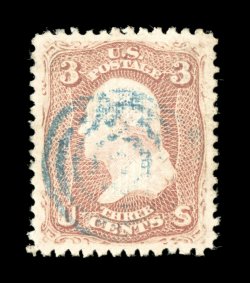 144 Ou 88 image#88, 3c Rose, "E" grill, huge perfectly balanced margins, bright color on immaculate paper, light central strike of a blue target cancel, long even perforations all around, extremely fine; a superb stamp in every respect; 2005 PSE certificate (XF-Superb 95; SMQ $470.00); one of only two used #88's to grade XF-Superb 95, the highest grade the PSE has awarded this stamp; ex-Hinrichs. (Image) $27.50