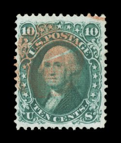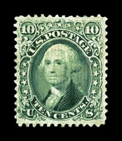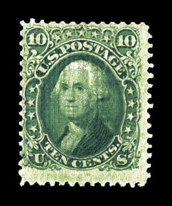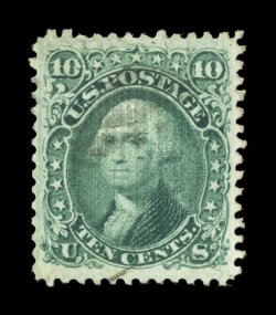 146 Ou 89 image#89, 10c Green, "E" grill, an impressively margined used example of this scarce stamp, featuring especially large and beautifully balanced margins all around, intensely rich and luxuriant color, very light and unobtrusive cancel, an extremely fine used gem; 1981 and 1986 PF certificates, as well as a 2006 PSE certificate (XF 90; SMQ $780.00). (Image) $325.00