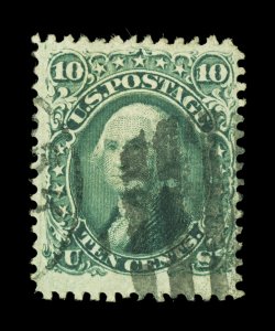 147 O 89 image#89, 10c Green, "E" grill, used, well centered and with much larger margins than normally encountered, strong fresh color, bold grid pmk., very fine. (Image) $325.00