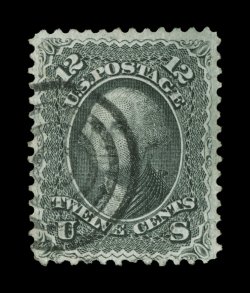 158 Ou 97 image#97, 12c Black, "F" grill, very well centered and margined, strong color and impression, circle of wedges cancel, extremely fine; 2004 PF certificate and a 2005 PSE certificate (VF-XF 85; SMQ $450.00). (Image) $275.00