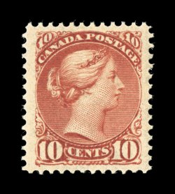 1661 nh 45 image#45, 1897 10c Brown red, an absolutely superb mint example in a condition which would be hard to improved upon, precisely centered amid lavishly large margins, stunning rich color and a razor-sharp impression, even its perforations are uncommonly uniform and intact, unblemished o.g., never hinged, an extremely fine gem in every regard; an amazingly rare stamp in this stellar quality; 1997 Greene Foundation certificate; ex-"Crossings" (Unitrade C$2,400.00). (Image) $975.00