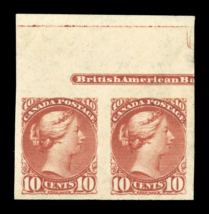 1663 og 45c image#45c, 1897 10c Brown red, imperforate, handsome top sheet margin partial imprint horizontal pair, large margins on the other three sides also, gorgeous rich color on fresh white paper, o.g., h.r., extremely fine; 1999 CPES certificate (Unitrade C$750.00). (Image) $500.00