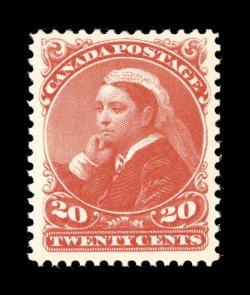 1664 og 46 image#46, 1893 20c Vermilion, gem mint example, being exceptionally well centered within large margins, plus its color is wonderfully bright and fresh, o.g., barest trace of hinging (if any), extremely fine (Unitrade C$600.00). (Image) $375.00