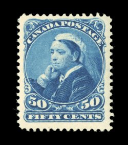 1665 og 47 image#47, 1893 50c Deep blue, select mint single, remarkably well centered within lavish margins, incredibly intense color and impression on bright white paper, full o.g., exceptionally lightly hinged, extremely fine (Unitrade C$600.00). (Image) $375.00