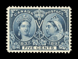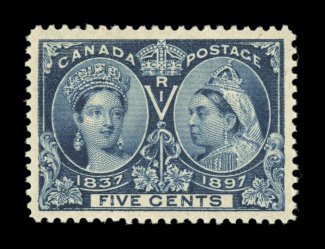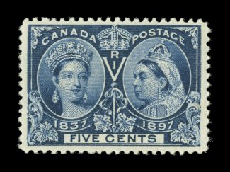1671 nh 54 image#54, 1897 5c Jubilee, extraordinarily well centered within large margins, rich luxuriant color and a razor-sharp impression on fresh white paper, o.g., n.h., extremely fine and most attractive (Unitrade C$225.00). (Image) $125.00