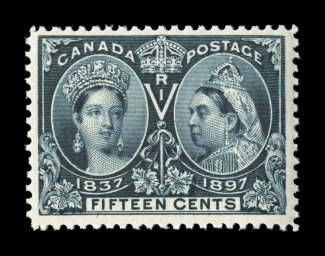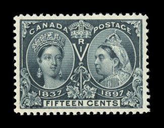 1678 nh 58 image#58, 1897 15c Jubilee, gem mint single being precisely centered within large margins, deeply rich color and a detailed impression, pristine o.g., never hinged, extremely fine and wonderfully choice; 1998 CPES certificate (Unitrade C$900.00). (Image) $500.00