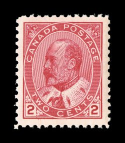 1722 nh 90 image#90, 1903 2c Carmine, Type II, magnificent mint single, extraordinarily well centered within four jumbo margins, brilliant color with highly detailed impression on bright white paper, plus full even perforations, flawless o.g., n.h., all making for an amazingly fresh and extremely fine gem (Unitrade C$120.00). (Image) $50.00