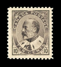 1724 nh 93 image#93, 1903 10c Brown lilac, marvelously well centered example, extravagantly large margins, strong fresh color and razor-sharp impression, unblemished o.g., n.h., extremely fine; and gem example of this scarce higher value; 1998 Greene Foundation certificate for a block of four, this being the bottom left stamp (Unitrade C$1,650.00). (Image) $675.00