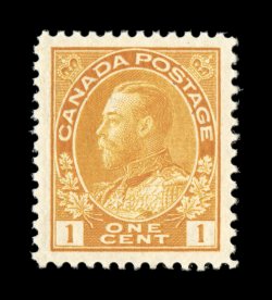 1740 nh 105d image#105d, 1924-25 1c Orange yellow, dry printing, Die II, perfectly centered mint single possessing wide even margins, vibrant deep color on fresh white paper exhibiting full even perforations, immaculate o.g., n.h., extremely fine; not at all common in this gem condition (Unitrade C$52.50). (Image) $30.00