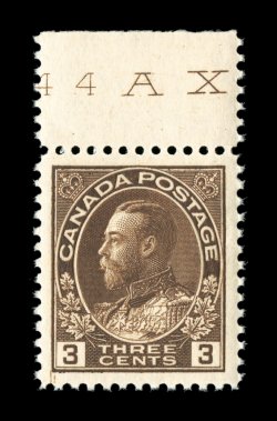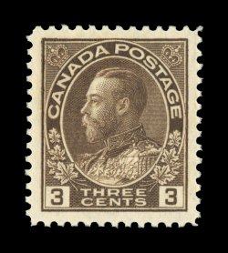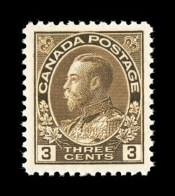 1742 nh 108 image#108, 1918 3c Brown, wet printing, pristine mint single, beautifully centered within uncommonly large margins, deep rich color, o.g., n.h., extremely fine and exceedingly choice (Unitrade C$75.00). (Image) $40.00