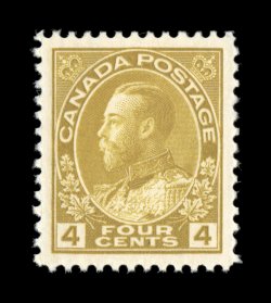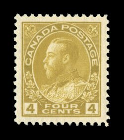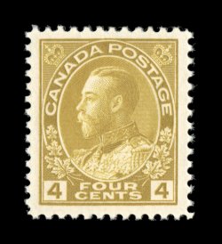 1747 nh 110d image#110d, 1925 4c Yellow ochre, dry printing, an impressive mint single, being precisely centered within large margins, deep luxuriant color and an especially intense impression, unblemished o.g., n.h., extremely fine gem (Unitrade C$195.00). (Image) $105.00