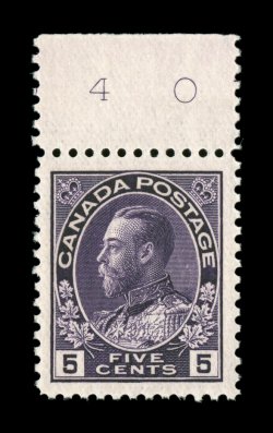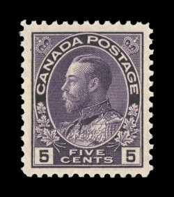 1752 nh 112 image#112, 1922 5c Violet, wet printing, exceptionally well centered mint single, intense dark color and razor-sharp impression on bright white paper, o.g., n.h., extremely fine and exceedingly choice (Unitrade C$120.00). (Image) $65.00