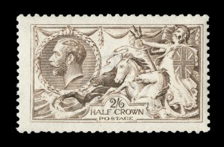 1809 nh 173a image#173a, 1915 2/6 Light brown, De La Rue printing from a worn plate, a distinctive printing, fresh, o.g., n.h., very fine (S.G. #407; £225). (Image) $325.00