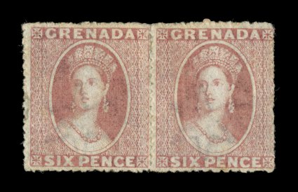 1812 ng 4 image#4, 1863 6p Rose, rough perf. 14 to 16, wmk. small star, unused horizontal pair with traces of gum, fresh bright color in one of the lighter rose shades, quite well centered for this early issue, o.g., couple of trivial stains that are barely noticeable, otherwise very fine; unused multiples of this value in any of the colors that were issued between 1863 and 1871 are of the greatest rarity, a total of only seven such multiples are recorded; 2006 RPS certificate (S.G. #6; £1,200+). (Image) $1,400.00+