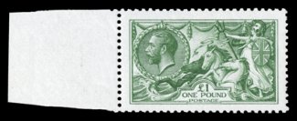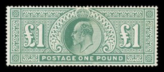 187 og 320 imageS.G. #320, 1911 £1 Deep green, Somerset House, particularly intense color on bright paper, well centered, o.g., choice very fine; a handsome stamp (Scott #142b). (Image) £1,600