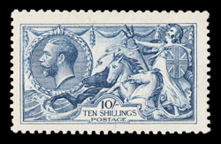 186 og 319 imageS.G. #319, 1912 10/- Blue, Somerset House, perfectly centered, deep luxuriant color, o.g., barest trace of hinging, an extremely fine gem; ex-Sir Gawaine Baillie (Scott #141a). (Image) £700