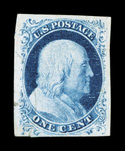 9 O 7 image#7, 1c Blue, Ty. II, full to mostly very large margins all around, deep color and a sharp impression on fresh paper, unusually light town cancel, extremely fine; 1999 PF certificate. (Image) $170.00
