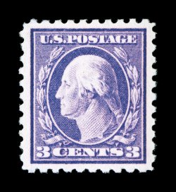 270 nhu 426 var. image#426 var., 3c Deep violet, aniline ink (pink back) variety, remarkably well centered within large margins, excellent color in this distinctive shade, o.g., n.h., extremely fine; a lovely gem; 2007 PSE certificate (XF-Superb 95; SMQ $470.00). (Image) $35.00