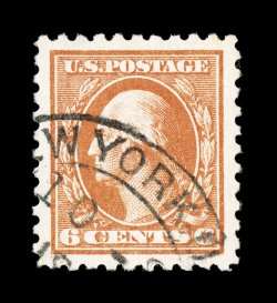 274 Ou 429 image#429, 6c Red orange, an eye-arresting used single, being absolutely perfectly centered amid remarkably large margins, plus its color is brilliantly fresh on immaculate white paper, neatly struck New York double-oval cancel, a superb gem for the finest used collection; 2007 PSE certificate (Superb 98 Jumbo; SMQ $285.00 for 98); this is the only used example to grade 98J, the highest given to date. (Image) $2.00
