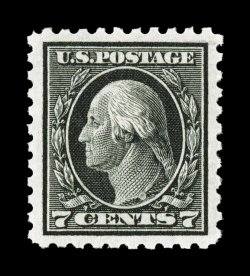 275 ogu 430 image#430, 7c Black, incredibly well centered and margined for this especially difficult value, deep color and impression on fresh paper, o.g., lightly hinged, an extremely fine gem; 2004 PSE certificate (Superb 98; SMQ $640.00); only one stamp grades slightly higher (98J). (Image) $100.00
