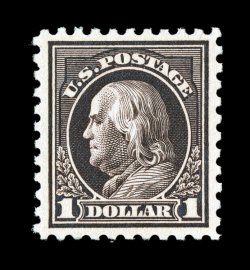 294 nhu 460 image#460, $1.00 Violet black, a magnificent mint single in a quality with which few others can compare, as this example possesses numerous physical attributes seldom seen on this high value, including being in a fabulous "post office" fresh state, with deep luxuriant color and a prooflike impression on crisp paper, additionally its centering is near perfect within extraordinarily large margins, immaculate o.g. without a single bend or skip, n.h., extremely fine gem; 2007 PSE certificate (XF-Superb 95; SMQ $11,200.00). (Image) $1,900.00