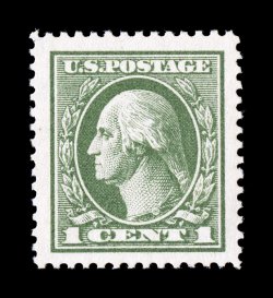 376 nhu 552 image#552, 1c Deep green, a superb mint example, fabulously well centered within extraordinarily large margins, prooflike color and impression, o.g., n.h., an extremely fine jumbo; 2005 PSE certificate (Superb 98 Jumbo; SMQ $265.00 for 98); this is the highest grade awarded to Scott #552, and the only example to achieve this impressive grade. (Image) $2.75
